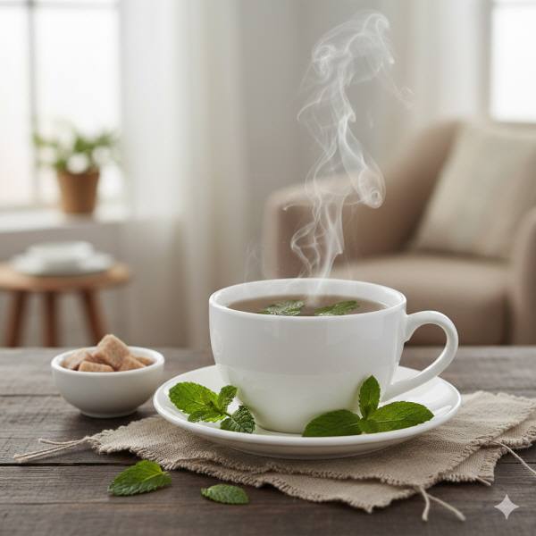 아침 페퍼민트차 코막힘 완화, 상쾌한 하루 시작